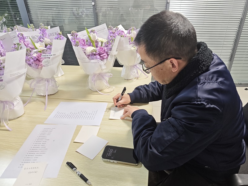 3月7日清晨,市文旅公司在家領(lǐng)導(dǎo)班子早早來到黨員活動(dòng)室,他們親手包扎鮮花、手寫賀卡,他們有說有笑、氣氛歡悅,用心地為每一位女職工準(zhǔn)備節(jié)日禮物。而后,領(lǐng)導(dǎo)班子帶著鮮花分別走訪各部門,來到女職工堅(jiān)守的一線崗位,看望慰問全體女職工。他們手捧鮮花,向女職工一一問好,為她們送上濃濃的節(jié)日祝福,感謝她們?cè)诟髯詬徫簧暇ぞI(yè)業(yè)的付出,為她們默默堅(jiān)守崗位、辛勤奉獻(xiàn)點(diǎn)贊,鼓勵(lì)她們立足崗位,繼續(xù)奮斗新征程,發(fā)揮文旅“她”力量。女同志們紛紛表示感謝黨支部安排的意外驚喜,今后的工作中更加積極發(fā)揮“半邊天”的作用,在各自崗位上不斷創(chuàng)造新的成績(jī)。