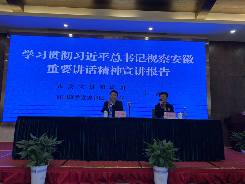 活動第二部分,公司邀請了市委宣講團成員、市國資委黨委書記、主任江瀾同志給公司全體員工作了《學習貫徹習近平總書記視察安徽重要講話精神》的宣講。江主任對習總書記視察安徽重要講話精神作了深刻的闡述,并結(jié)合實際對我公司為蕪湖市經(jīng)濟、產(chǎn)業(yè)發(fā)展所作貢獻、取得成績給予高度認可,進一步激發(fā)了公司全體員工干事創(chuàng)業(yè)的激情。